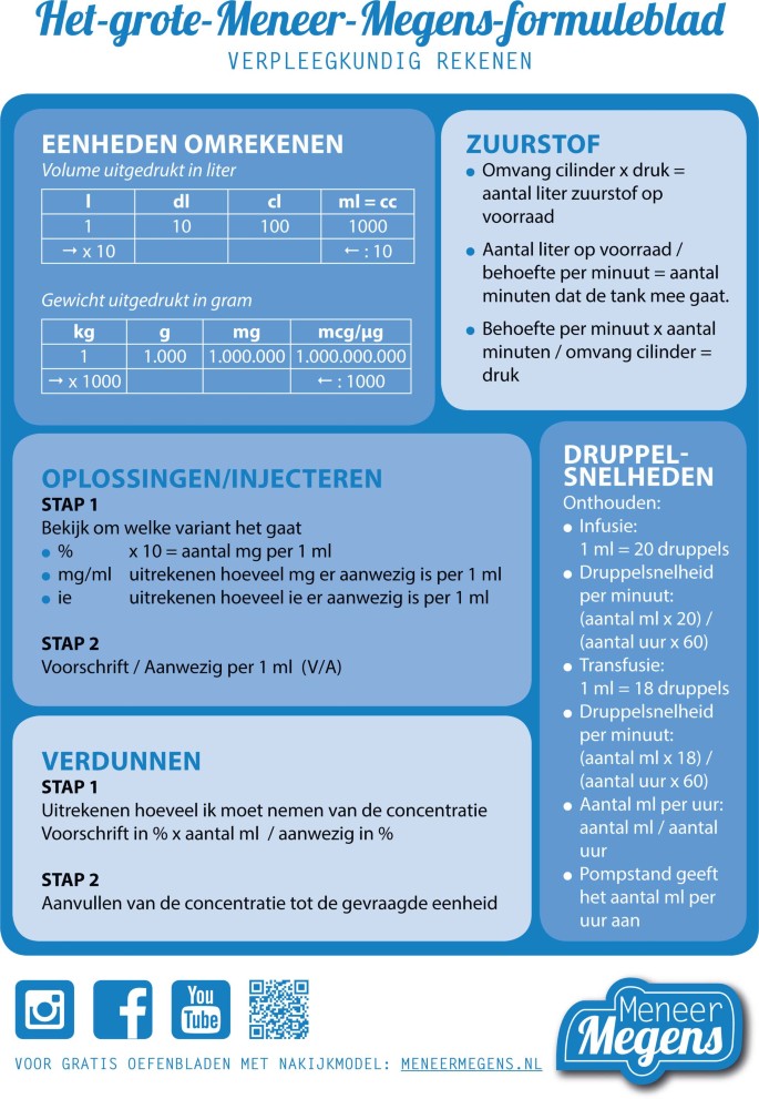 Formules Rekenen Het Grote Meneer Megens Formuleblad Verpleegkundig Rekenen Eenheden Omrekenen Studeersnel